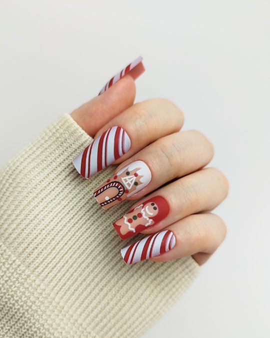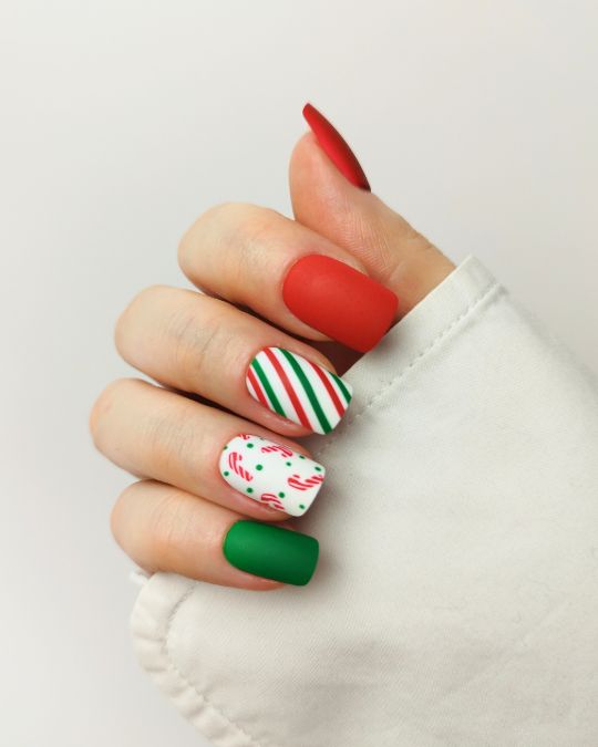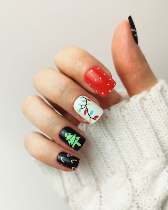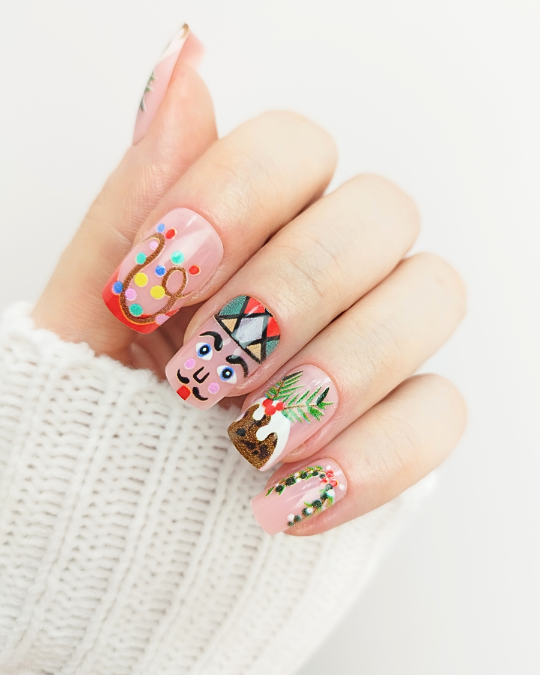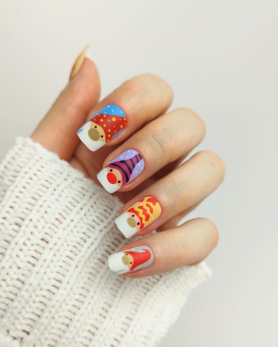 In this particular Christmas nail inspiration post, we’re focusing on fun Christmas nails. Think super whimsical nail art. Think Christmas gnomes, festive colors, mix-and-match nails, and cute patterns.